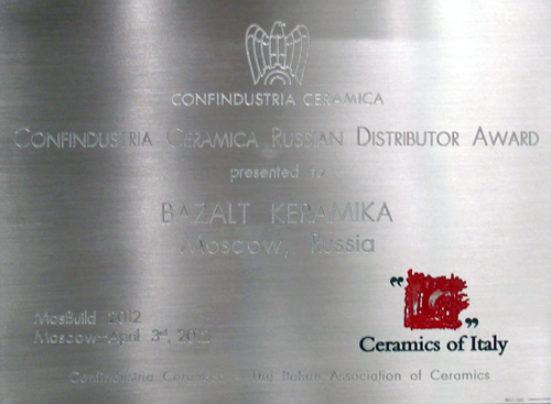 На второй день выставки MosBuild 2012 на площадке итальянской ассоциации производителей керамической плитки состоялось традиционное награждение лучшего дистрибьютора итальянской плитки 2011 года.
